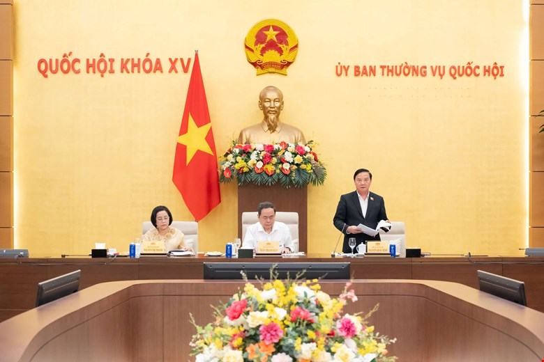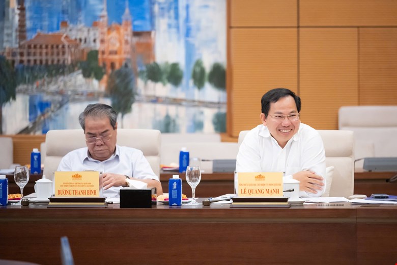 Phó Chủ tịch QH Uông Chu Lưu, Tổng thư ký QH Nguyễn Hạnh Phúc với các thành viên Ban Thư ký. Ảnh: Văn Bình - Cổng TTĐT