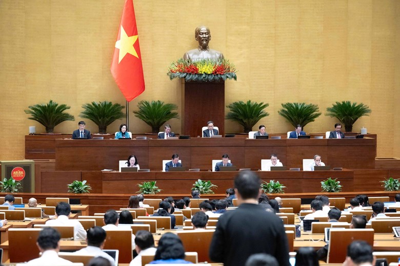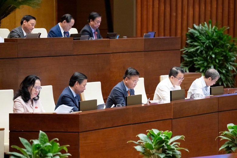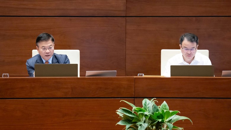 Bộ trưởng Bộ tư pháp Vũ Thành Long trình bày tờ trình..Ảnh : Văn Bình - Cổng TTĐT