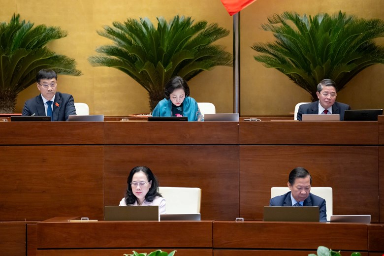 Chủ nhiệm Uỷ ban TP Lê Thị Nga trình bày báo cáo thẩm tra..Ảnh : Văn Bình - Cổng TTĐT