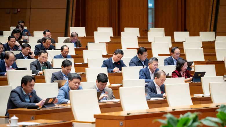 Các đại biểu Quốc hội tham dự phiên họp tại hội trường Diên Hồng.
