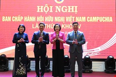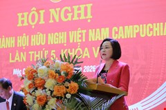 Chủ tịch Quốc hội Vương Đình Huệ và Phó Chủ tịch nước Võ Thị Ánh Xuân trao đổi bên lề phiên họp.