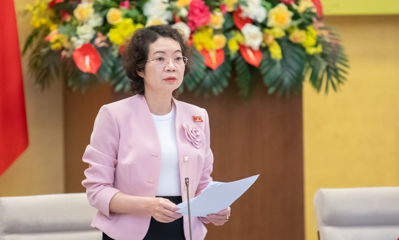 Phó Chủ nhiệm Ủy ban Pháp luật và Tư pháp Mai Thị Phương Hoa trình bày dự thảo Báo cáo tóm tắt thẩm tra dự án Bộ luật Hình sự (sửa đổi)