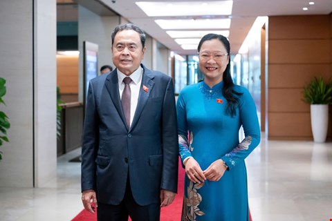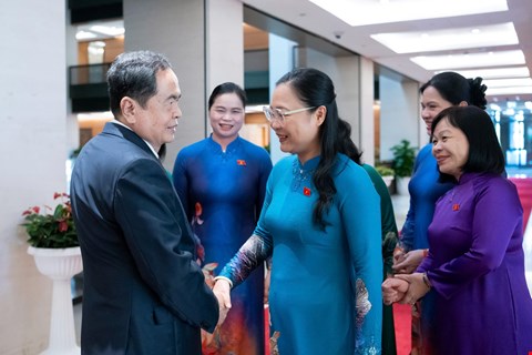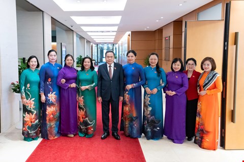 Chiều 20/10/2025: Chủ tịch Quốc hội Trần Thanh Mẫn chụp ảnh lưu niệm với các nữ ĐBQH nhân ngày 20-10