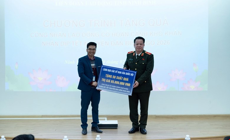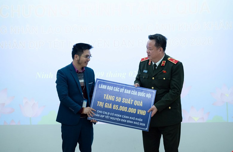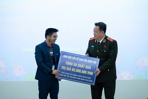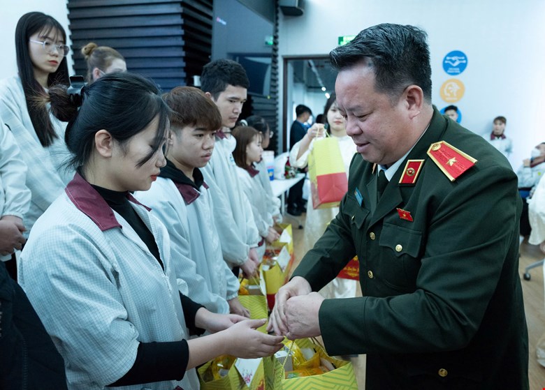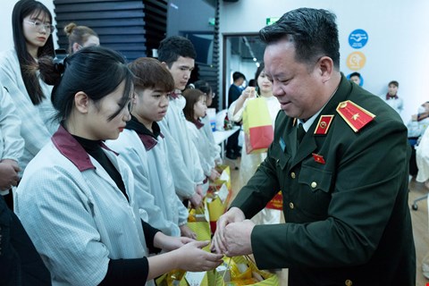 Sáng 9/2/2026: Thiếu tướng NGUYỄN QUỐC HÙNG tặng quà cho công nhân lao động Công ty TNHH Wistron Infocomm Việt Nam tại Khu Công nghiệp Đồng Văn III, tỉnh Ninh Bình