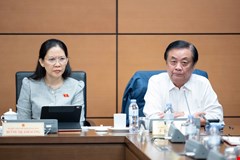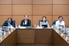 Bộ trưởng Bộ Lao động, Thương binh và Xã hội Phạm Thị Hải Chuyền trả lời chất vấn trước Quốc hội. Ảnh: Vụ Thông Tin - VPQH