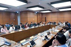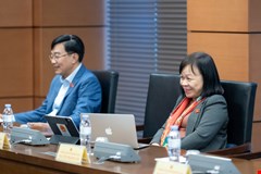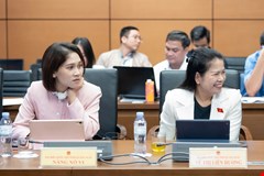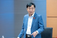 Đại biểu Quốc hội Tỉnh Nghệ An Nguyễn Đức Hiền chất vấn Bộ trưởng Bộ Lao động, Thương binh và Xã hội Phạm Thị Hải Chuyền. Ảnh: Vụ Thông Tin - VPQH