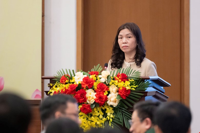 Bà Trịnh Giáng Hương Lãnh đạo Thư viện Quốc hội giới thiệu đại biểu, tuyên bố lý do, giới thiệu lãnh đạo phát biểu khai mạc buổi lễ. Ảnh: Văn Bình - Cổng TTĐT