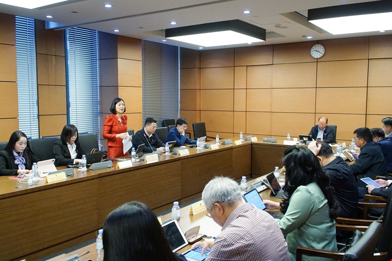 Đại biểu Cao Thị Xuân - Tỉnh Thanh Hóa về việc thực hiện chính sách, pháp luật về quản lý, sử dụng đất đai tại các nông trường, lâm trường quốc doanh, giai đoạn 2004-2014. Ảnh : Văn Bình - Cổng TTĐT