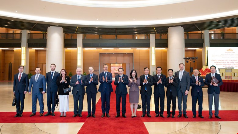 Chiều 26/6 theo giờ địa phương, trong khuôn khổ chuyến thăm chính thức Hungary, tại Thủ đô Budapest, Chủ tịch Quốc hội Vương Đình Huệ và Đoàn đại biểu cấp cao Quốc hội Việt Nam đã đến thăm Đại sứ quán Việt Nam và gặp gỡ cộng đồng người Việt Nam tại Hungary.