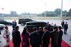 Tiếp tục chuyến thăm chính thức Vương quốc Anh, sáng 29/6, Chủ tịch Quốc hội Vương Đình Huệ và Đoàn đại biểu cấp cao Quốc hội Việt Nam đến đặt hoa tại Biển tưởng niệm Bác Hồ, tại Tòa nhà New Zealand, trên phố Hay market ở thủ đô London.