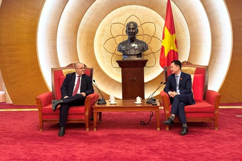 Phó Chủ nhiệm Ủy ban Đối ngoại Đôn Tuấn Phong tiếp Tham tán Công sứ phụ trách các vấn đề nghị viện thuộc Phái đoàn Liên minh châu Âu (EU) tại ASEAN